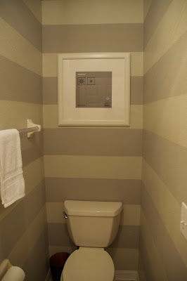 There are still things we want to do like replace both light fixtures, vanity, sink, toilet paper holder, and remove the oversized towel bar, which is not necessary since there is no shower or bath, oh and put a picture in the picture frame ;)